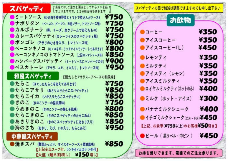 お召し上がり切れない時はお持ち帰り頂けますので、お気軽にお声をかけて下さい。