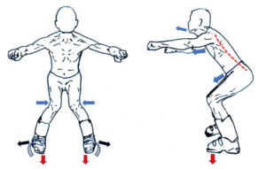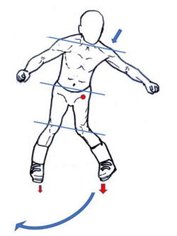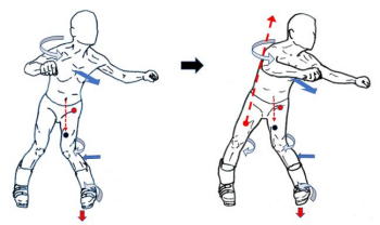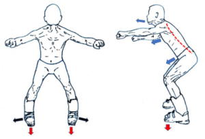 普通に立った場合、体の重心は臍(へそ)辺りにあるといわれますが、下半身が急に前後左右に動いた場合上半身には慣性が働き、結果、足裏の重心位置が最適位置から移動し、力の伝わり方の効率が悪くなってしまいます。