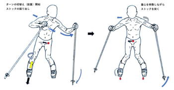 スキーの重心とスキーヤーの重心を常にシンクロさせると言う事につきます。